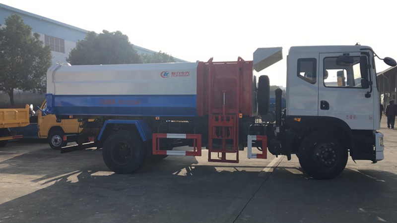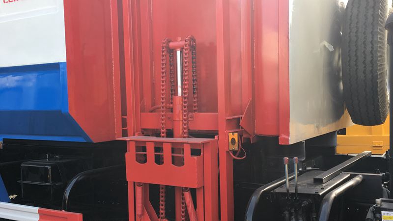 標(biāo)準(zhǔn): 掛桶式自裝卸垃圾車:采用鏈條和液壓油缸聯(lián)動(dòng)裝置,實(shí)現(xiàn)對(duì)垃圾桶提升和翻轉(zhuǎn),將多處垃圾桶內(nèi)的垃圾自動(dòng)收入車廂內(nèi),并到目的地一次性自卸出來(lái)。