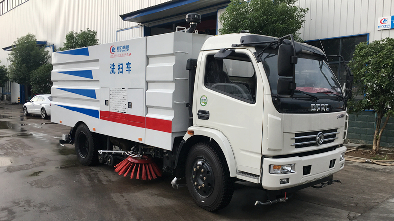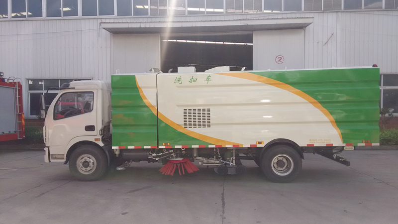 - 底盤發(fā)動機驅動洗掃車向前行走,掃至吸嘴前方的垃圾不斷進入到吸嘴中,并源源不斷地被吸到垃圾箱中,實現路面清掃。