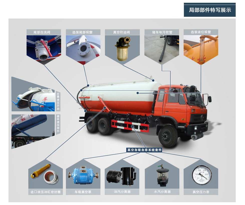 標(biāo)準(zhǔn): 吸污車(chē):專(zhuān)用部分由取力器、傳動(dòng)軸、真空吸污泵、水氣分離器、油氣分離器、多路換向閥、吸污罐、吸污管道、清水箱、視位管、真空壓力表、管網(wǎng)系統(tǒng)、液滿(mǎn)報(bào)警系統(tǒng)等組成。廣泛適用于大、中、小城鎮(zhèn)環(huán)衛(wèi)、市政、農(nóng)業(yè)、化工、廠礦企業(yè)、物業(yè)小區(qū)使用。采用二類(lèi)汽車(chē)底盤(pán)改裝,罐體可舉升自卸,罐體后蓋可液壓打開(kāi)。