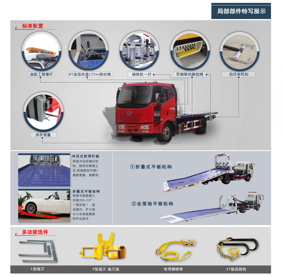解放J6后雙橋拖吊連體清障車