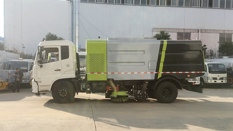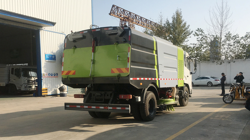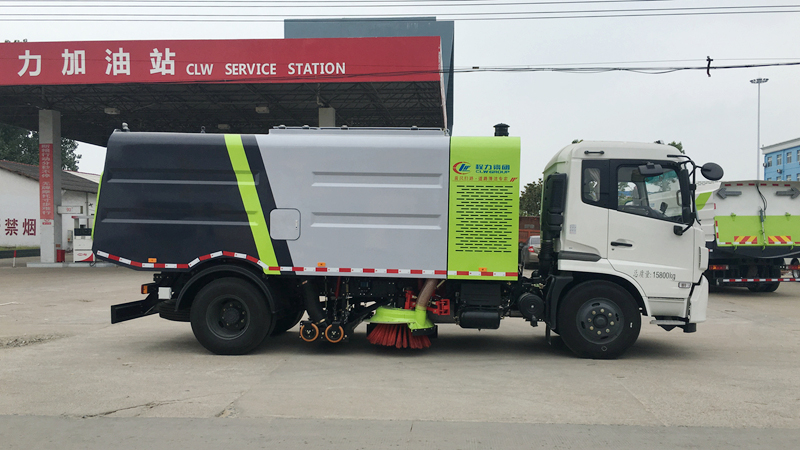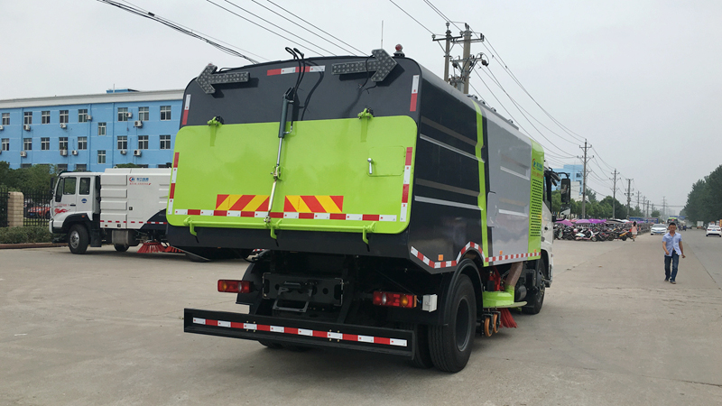 1、采用吸掃結(jié)合的方式收集垃圾,濕式除塵、電液控制,液壓傾翻卸料的作業(yè)方式對(duì)路面進(jìn)行清掃作業(yè)。