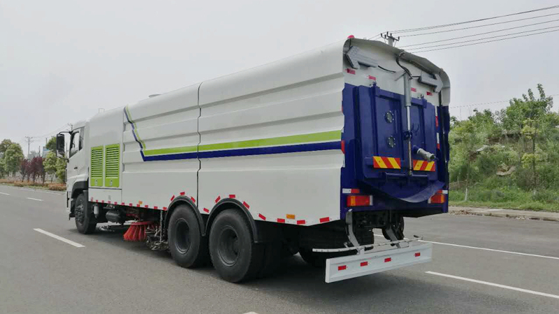 8)采用先掃,后沖刷,再吸收的工作方式,能將垃圾及污水一次清掃、沖刷、吸收干凈。路面作業(yè)后無塵土,無積水;